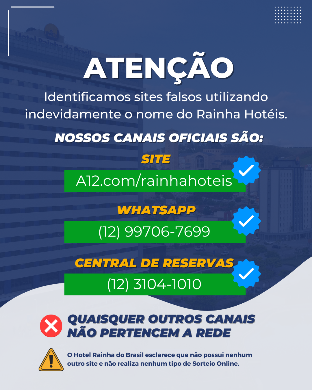 O grupo Rainha Hotéis é composto pelo pioneiro Hotel Rainha do Brasil, inaugurado em 2012, e pelo Hotel Rainha dos Apóstolos, inaugurado em 2021. Ambos oferecem estadias que vão além da hospedagem, proporcionando vivências que unem conforto, cuidado e devoção em cada momento da sua visita.
